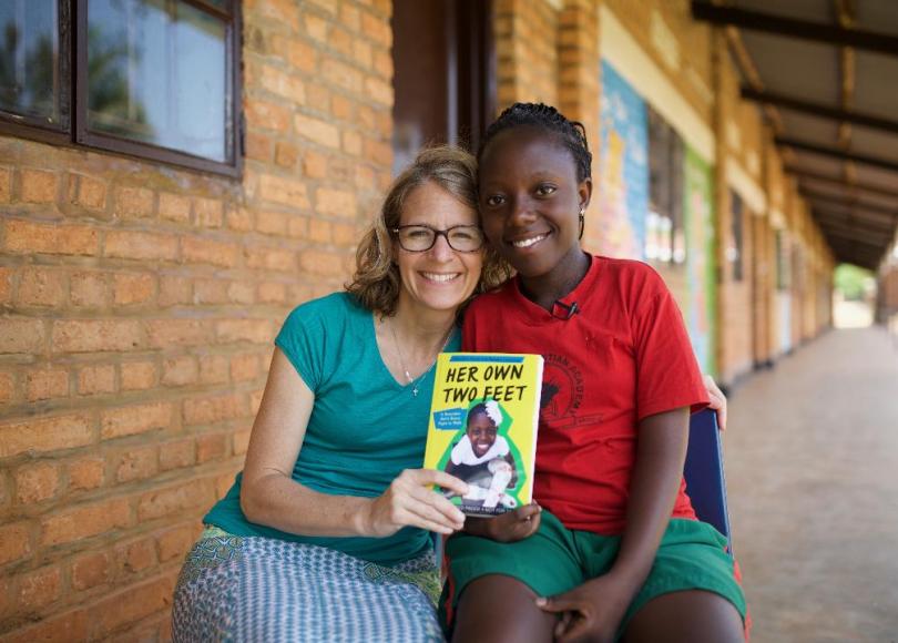 A: Meredith: We don’t get to talk as often as I would like. It is difficult since Rebeka doesn’t have a phone or easy access to the internet. We send emails sometimes and if there is something important I need to tell Rebeka or show her, I can always find a friend in Rwanda who can get her a message or package. I have several friends in America that travel to Rwanda and visit Rebeka. Those friends showed Rebeka the cover of her book once the publisher finished it, and a picture of the president of Rwanda holding a copy of Her Own Two Feet. They brought her an advanced reader copy, and then the final hardback copy when it came out. I try to travel to Rwanda once a year to see Rebeka and her family in person. I think I’m closer than ever to Rebeka after writing this book. I learned so much about her early childhood, and the book is a shared project that will tie us together forever.