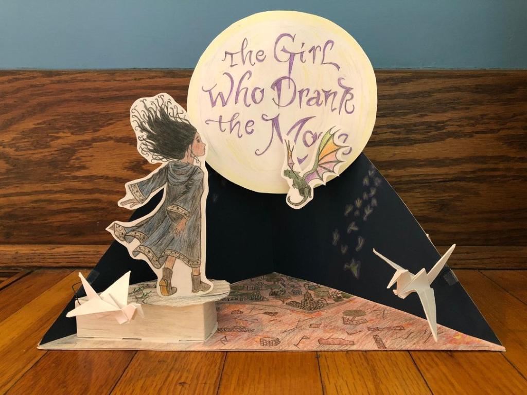 Note from Elena: 12-year-old Frances M. loves books a lot! A few weeks ago, she reviewed Ella Enchanted. Now, she’s back at it again with another book she loves called The Girl Who Drank The Moon. She read the book for a school project, and she made a really cool triorama based on the book! You can see Frances’ amazing artwork below. Here’s her review: